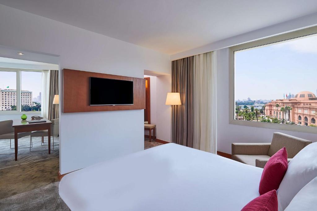The lavishly-appointed Capital Suite boast 80 sqm of space, comprising dressing room, spacious bedroom with Queen bed, dining and lounge area with desk and work space, plus an extra small bathroom. Capital suites enjoy panoramic views over Tahrir Square and the Egyptian Museum with a tantalizing glimpse of the River Nile.